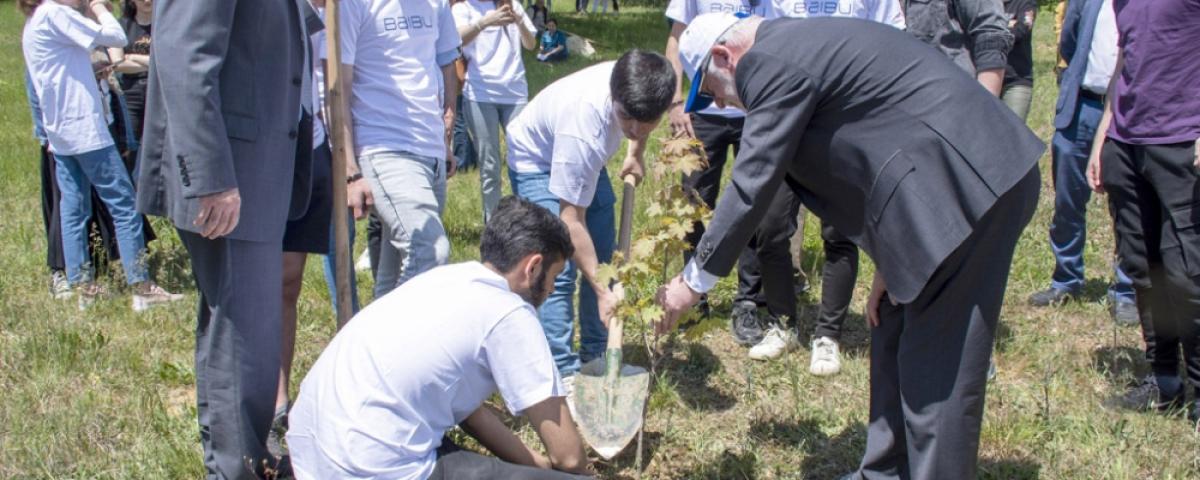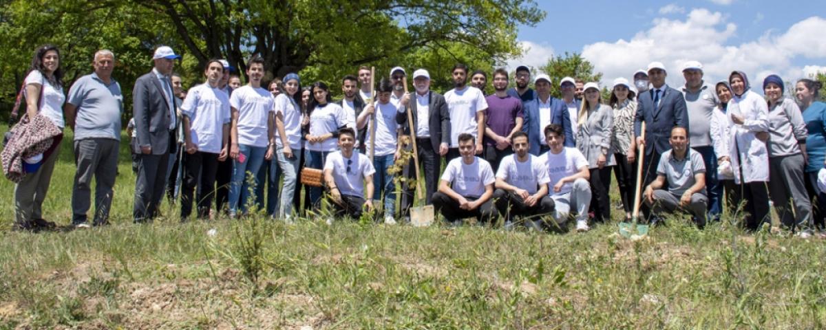 Diş Hekimliği Fakültesi'nin hasta girişi önündeki arazide yapılan etkinliğe, Rektör Alişarlı'nın yanı sıra Rektör Yardımcısı Prof. Dr. Aydın Him, Dekan Prof. Dr. Ali Keleş, Dekan Yardımcıları Doç. Dr. Hamiyet Kılınç ve Dr. Öğr. Üyesi Deniz Sıla Özdemir, Öğrenci Konseyi Başkanı Alperen Akgül ve konsey üyeleri, akademik ve idari personel ile öğrenciler katıldı. Etkinlikte, yaklaşık 300 fidan toprakla buluşturulup can suyu verildi. Elif Erdoğan