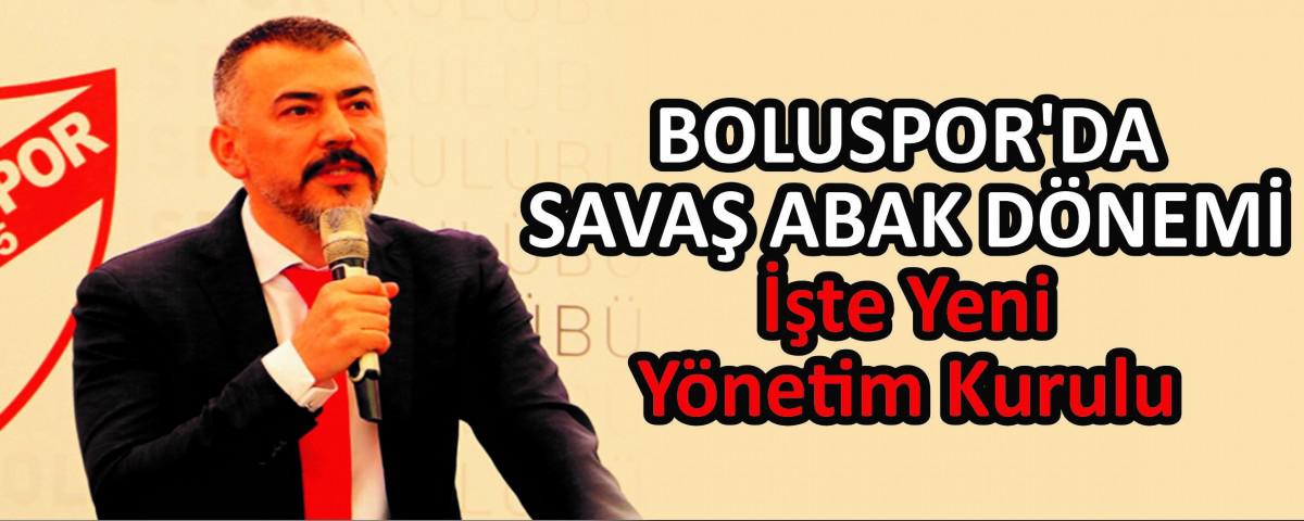 Savaş Abak başkanlığındaki Boluspor'un yeni yönetim kurulu listesinde şu isimler yer aldı: Abdullah Alemdar, Abdullah Onur, Ahmet Doğan, Ahmet Topaloğlu, Ahmet Ufuk Güler, Ali Gürsoy, Ali Osman Çelik, Ali Sarıyıldız, Cevat Çatladı, Cihat Coşkunyürek, Çetin Uç, Erdal Bayrak, Ergün Söbütay, Erkan Bektaş, Erol Afacan, Faruk Gören, Fuat Tut, Hakan Özsoy, Halil İbrahim Yavaş, Hamza Kahraman, Hulusi Apaydın, Kaan Semercioğlu, Kamuran Avcı, Mahmut Çimender, Mevlüt Sefa Özçelik, Muhterem Hevesker, Murat Ceylan, Mustafa Eren Gökdemir, Naci Tolga Türkar, Ramazan Kahraman, Samet Karakış, Şahin Ertem, Tuncay Yılmaz.