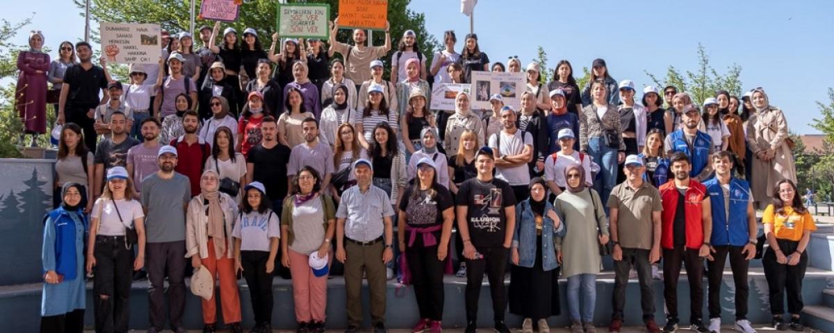 Üniversitemiz Öğrenci Merkezi önünden başlayan ve orman yolu yürüyüş güzergâhı boyunca devam eden yürüyüş, orman içi etkinlik alanında tamamlandı. Sağlık Bilimleri Fakültesi Hemşirelik Bölümü öğrencileri, burada yaptıkları sunumlarda, tütün ürünlerinin içerikleri, zararları ve bağımlılıktan kurtulma yolları gibi konularda katılımcılara bilgi verdi.