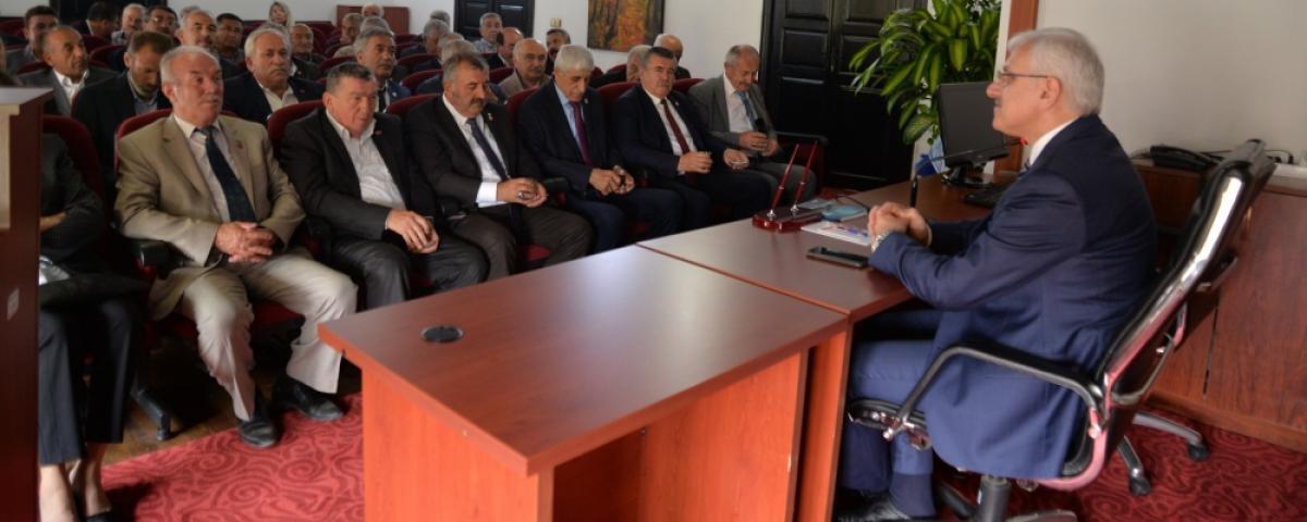 Bolu merkez mahalle ve köy muhtarlarıyla biraya gelen Bolu Valisi Erkan Kılıç, muhtarlarımızın istek ve taleplerini dinledi. Vali Kılıç, kendisine iletilen taleplerin takipçisi olacağını, mahalli hizmetlerin muhtarlarımızla işbirliği ve uyum içerisinde yürütüleceğini ifade etti.