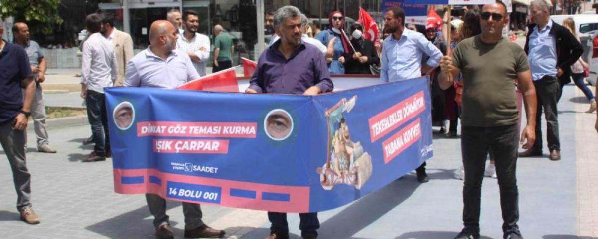 2021 yılının Haziran ayında 7 lira 24 kuruş olan mazot fiyatı 2022 Haziran ayında ise %259 artışla 26 lira oldu. Her şeye zam üstüne zam gelmesinin ardından Bolu Saadet Partisi İl Teşkilat mensupları farkındalık yürüyüşü gerçekleştirdi. Teşkilat tarafından tasarlanan maket otobüs ile İzzet Baysal Caddesinde, Saadet Partisi üyeleri sloganlar eşliğinde yürüdü. Saadet Partisi Bolu Teşkilatı, otobüsün ön far kısımlarına Ekonomi Bakanı Nurettin Nebati'in gözlerini koyarak ‘Dikkat göz teması kurma ışık çarpar' yazısıyla, protestosuna farklı bir boyut kazandırdı.