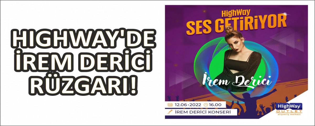 HighWay Outlet sahnesinde düzenlenen ücretsiz yaz konserleri kapsamında, Türk pop müziğinin sevilen ismi İrem Derici, 12 Haziran Pazar günü saat 16.00'da HighWay Outlet'te sevenleriyle buluşacağı konser programında en sevilen şarkılarını seslendirecek. Ünlü şarkıcının konseri, HighWay Outlet GS Store mağazası önündeki alanda gerçekleşecek.