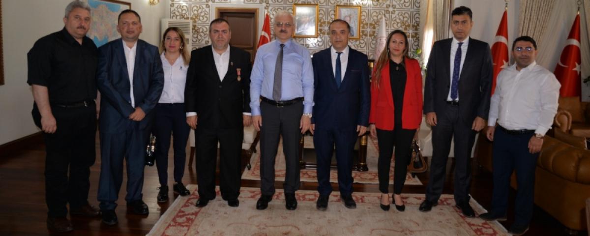 Bolu Şehit Aileleri ve Gaziler Sosyal Yardımlaşma ve Dayanışma Derneği Başkanı Muhittin Özel ile dernek üyesi kahraman gazilerimiz ve âziz şehitlerimizin muhterem yakınları Bolu Valisi Erkan Kılıç'ı ziyaret ederek hayırlı olsun dileklerini ilettiler.