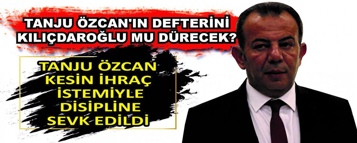 Attığı sosyal medya mesajıyla CHP Genel Başkanı Kemal Kılıçdaroğlu’na seslenerek Cumhurbaşkanı Erdoğan’ın ‘defterini dürüvereyim’ diyen Bolu Belediye Başkanı Tanju Özcan kesin ihraç istemiyle Disipline sevk edildi. Bolu Belediye Başkanı Tanju Özcan'ın kesin ihraç istemiyle disipline sevk edilmesine karar verildi.Ana muhalefet partisi CHP, dün MYK toplantısı gerçekleştirdi.
