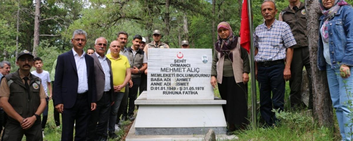 Şehit Orman Muhafaza Memuru Mehmet Alıç'ın mezarına çiçekler konuldu, kabri başında Kur'an-ı Kerim okundu ve dualar edildi.
