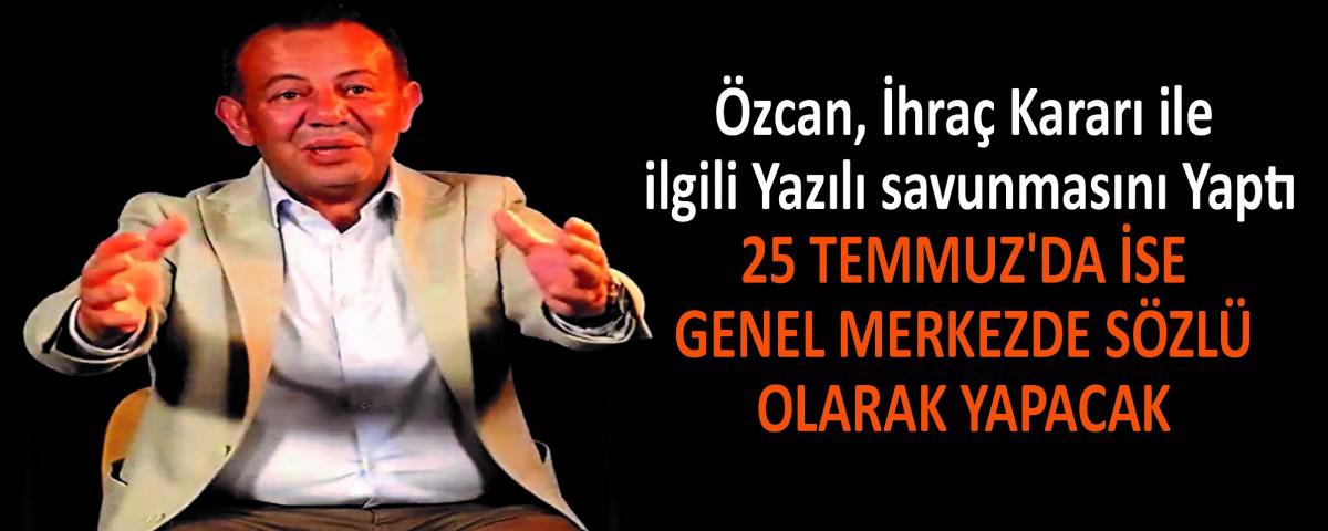 18 Temmuz'a kadar yazılı savunması istenen Başkan Özcan 25 Temmuz Pazartesi günü ise parti genel merkezinde sözlü savunmasını verecek.
