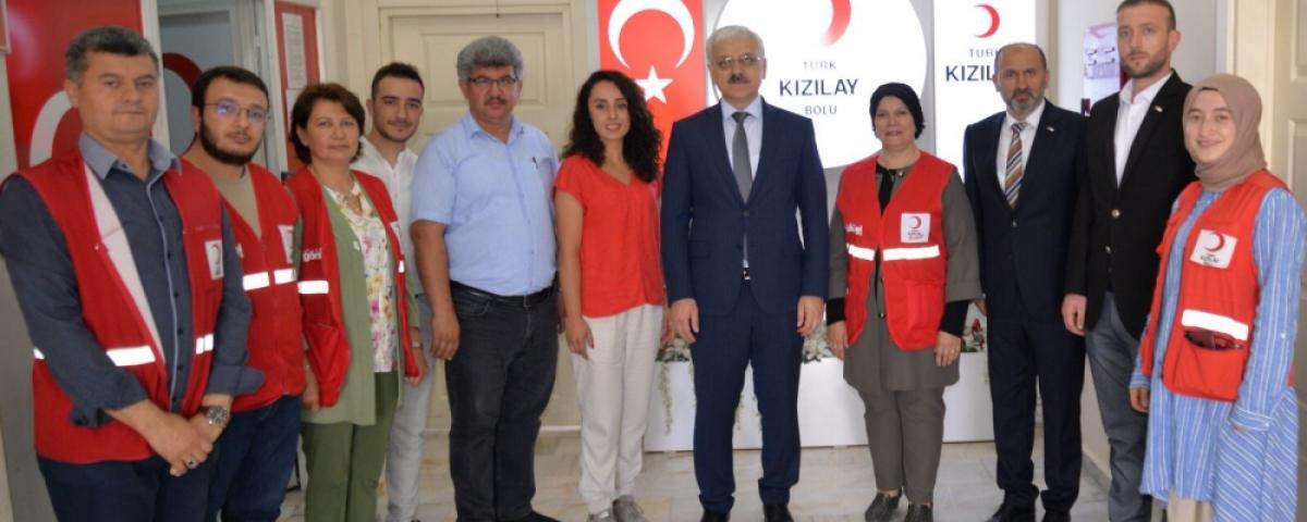 Bolu Valisi Erkan Kılıç,Kızılay Bolu Şubesi'ni ziyaret etti. Vali Kılıç, Kızılay Başkanı Muhsin Kınacı'dan Bolu'da yürütülen ayni/nakdi yardım faaliyetleri, öğrenci bursları, eğitim faaliyetleri, kan bağışları, gönüllülük çalışmaları ile planlanan projeler hakkında bilgiler aldı.