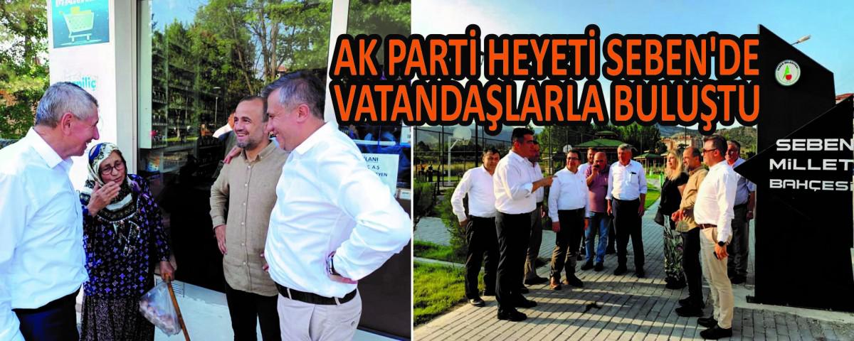 AK Parti Bolu İl Başkanlığı, vatandaşlarla iç içe olmak amacıyla başlatılan “Yüz Yüze 100 Gün” projesi kapsamında Seben'i ziyaret etti. İl Başkanı Suat Güner, Milletvekili Fehmi Küpçü, yönetim kurulu üyeleri ve partililer, ilk olarak Seben'deki köy ve mahalle muhtarlarıyla bir araya geldi. Partililer, daha sonra esnaf ziyareti gerçekleştirerek talep ve istekleri dinledi. Heyet, Gençlik ve Spor Bakanlığı tarafından 5,5 milyon TL hibe ile yapılan Seben Belediyesi Şehir Stadyumu, Çevre, Şehircilik ve İklim Değişikliği Bakanlığı tarafından hibe desteği ile tamamlanan Seben Millet Bahçesi, Seben Belediyesi tarafından yapımı devam eden Seben Göl Evi'nde incelemelerde bulundu.