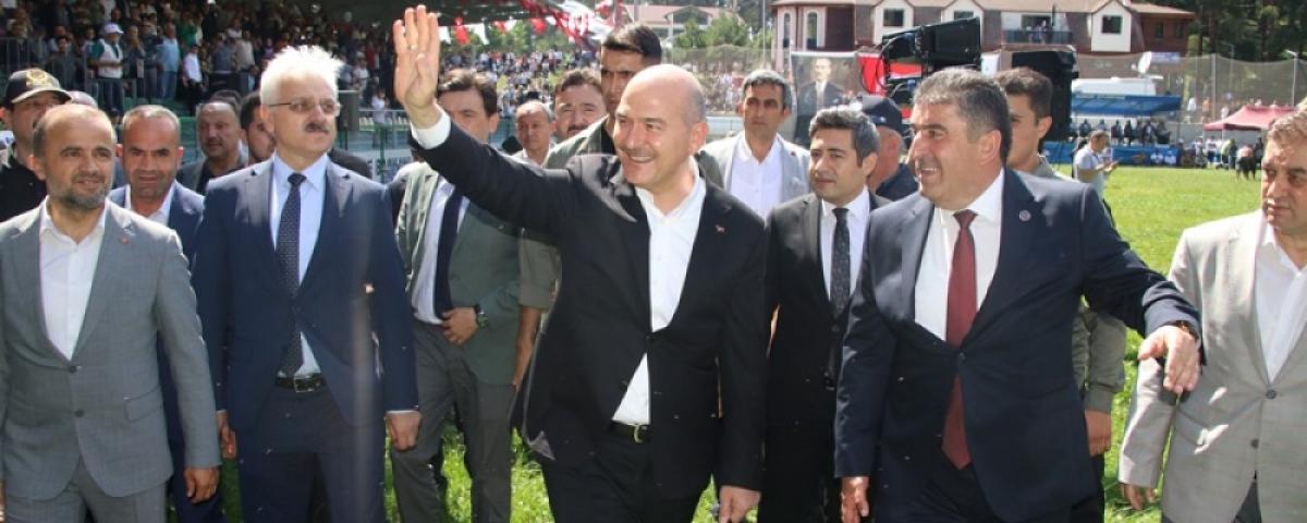 Vatandaşlar tarafından da büyük bir coşkuyla karşılanan İçişleri Bakanı Süleyman Soylu halkı selamlamalarının ardından güreş müsabakaları birinci tur kura çekimlerine katılarak ata sporumuz olan yağlı güreşin yiğit temsilcileri başpehlivanlarımıza başarılar diledi.