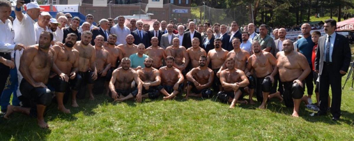 Bolu Valisi Erkan Kılıç, Er Meydanı'nda yapılan güreşler sonrasında 3. olan Hamza Köseoğlu ve Semih Turgut, 2. olan Ünal Karaman ile 1. Olan Başpehlivan Cengizhan Şimşek'e madalyalarını ve kupalarını vererek tebrik etti, başarılarının devamını diledi.