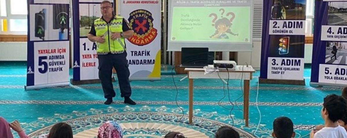 Bolu İl Jandarma Komutanlığı Trafik Şube Müdürlüğü ve Merkez İlçe Jandarma Komutanlığı 3.Motorlu Trafik Tim Komutanlığı tarafından Kuran kursu öğrencilerine ve eğitici personele trafik eğitimi verildi.