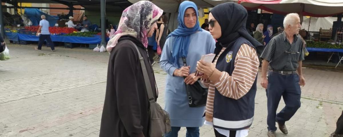 Asayiş Şube Müdürlüğü, Aileiçi Şiddet ve Kadına Karşı Şiddetle Mücadele Büro Amirliği tarafından “Kadın Destek Uygulaması (KADES)” uygulamasını tanıtarak bilgilendirmede bulunuldu. Yapılan bilgilendirme sonrasında kadınlar, telefonlarına KADES uygulaması yükledi.