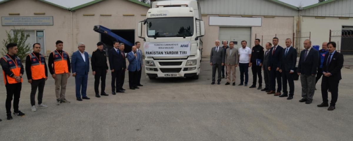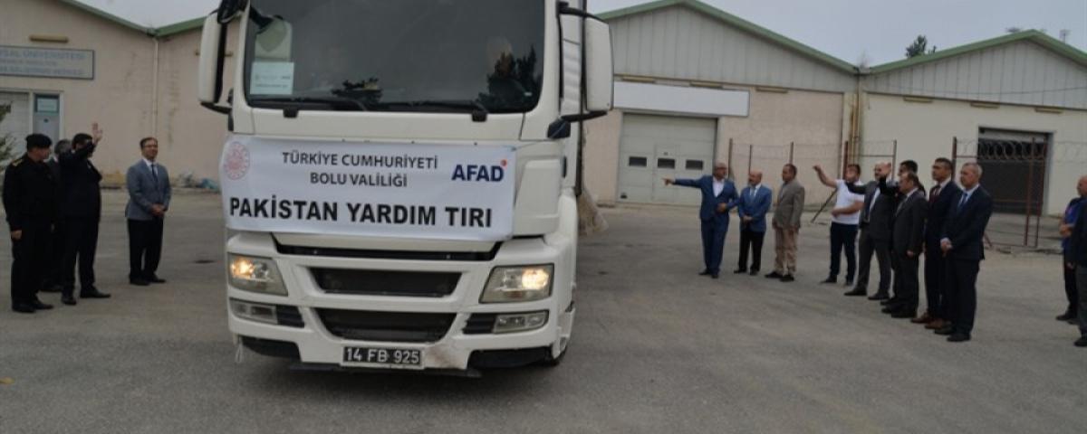 Bolu Valisi Erkan Kılıç, “Dost ve kardeş ülke Pakistan'da yakın zamanda çok ciddi bir sel afeti meydana geldi. 1300'ün üzerinde Pakistanlı maalesef hayatını kaybetti, ülkenin üçte biri sular altında kaldı. Bizler de millet olarak yaşanan bu üzücü duruma karşı destek vermemiz gerektiği düşüncesiyle dost ve kardeş ülke Pakistan için Bolulu hemşehrilerimizle birlikte kampanyaya katıldık. Hemşehrilerimizin ve hayırsever iş insanlarımızın destekleriyle 1500 koli gıda kolisi ve 100 koli hijyen malzemesinden oluşan yardım TIR'ını Pakistan'a ulaştırılması için gönderiyoruz. Bu kampanyaya öncülük eden Sayın Cumhurbaşkanımız Recep Tayyip Erdoğan'a ve İçişleri Bakanımız Sn. Süleyman Soylu'ya şükranlarımı arz ediyorum. Bu vesileyle, yardım kampanyasına destek veren halkımıza, Gerede Belediyesi'ne, Ticaret ve Sanayi Odası'na, Beypiliç, Erpiliç, Akpiliç, Barilla şirketlerine, Bolu İmam Hatipliler Derneği'ne, tüm hayırseverlerimize teşekkür ediyor, yardım yapmak isteyen hayırseverlerimizi, hemşehrilerimizi de belirttiğimiz hesaplara nakdi yardım yapmaya davet ediyorum. Kardeş Pakistan halkına tekrar geçmiş olsun dileklerimi iletiyor, her zaman yanlarında olduğumuzu ifade etmek istiyorum" dedi.
