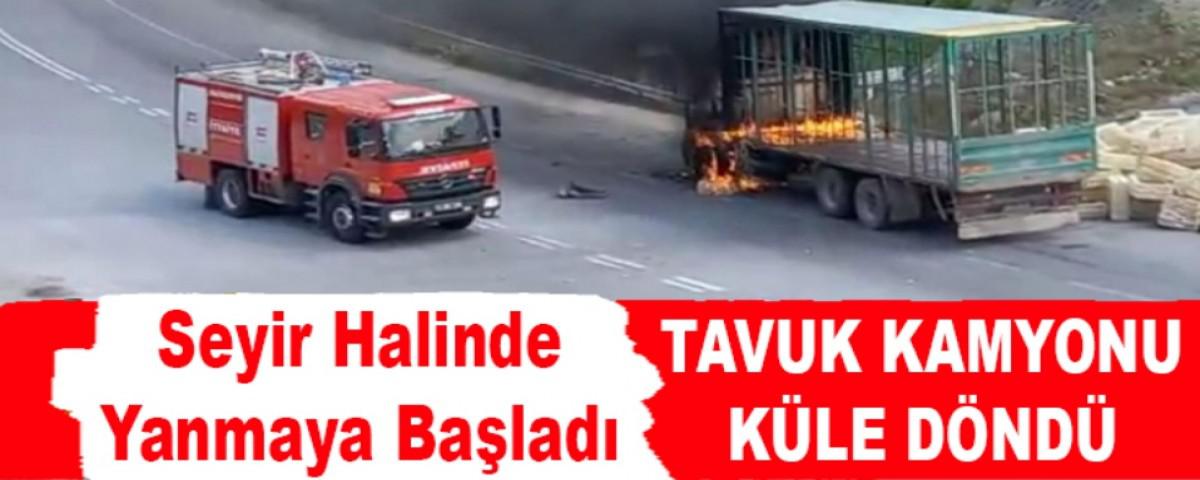 Alevleri söndüremeyince itfaiyeden yardım isteyen sürücü, tavuk taşımakta kullanılan boş kasaları zarar görmemeleri için yol kenarına indirdi.