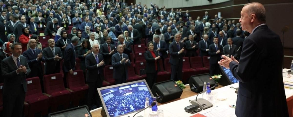 Sözlerini bitirirken yaptığı konuşma partililer tarafından dakikalarca ayakta alkışlanan Erdoğan, şu ifadeleri kullandı: "Milletimizin gönül dünyalarına girdiğimizde, 2023'te rekor bir oyla Cumhurbaşkanı ve Meclis seçimini Allah'ın izniyle göğüsleyebiliriz. Ben inanıyorum. İnandığıma göre bu işi Allah'ın izniyle başaracağız. Biz de muhalefetin hep yaptığı ve bugün de tekrarladığı gibi oturduğumuz yerden ahkam keserek siyaset yapmaya kalkarsak onların akıbetine uğramaktan kurtulamayız.