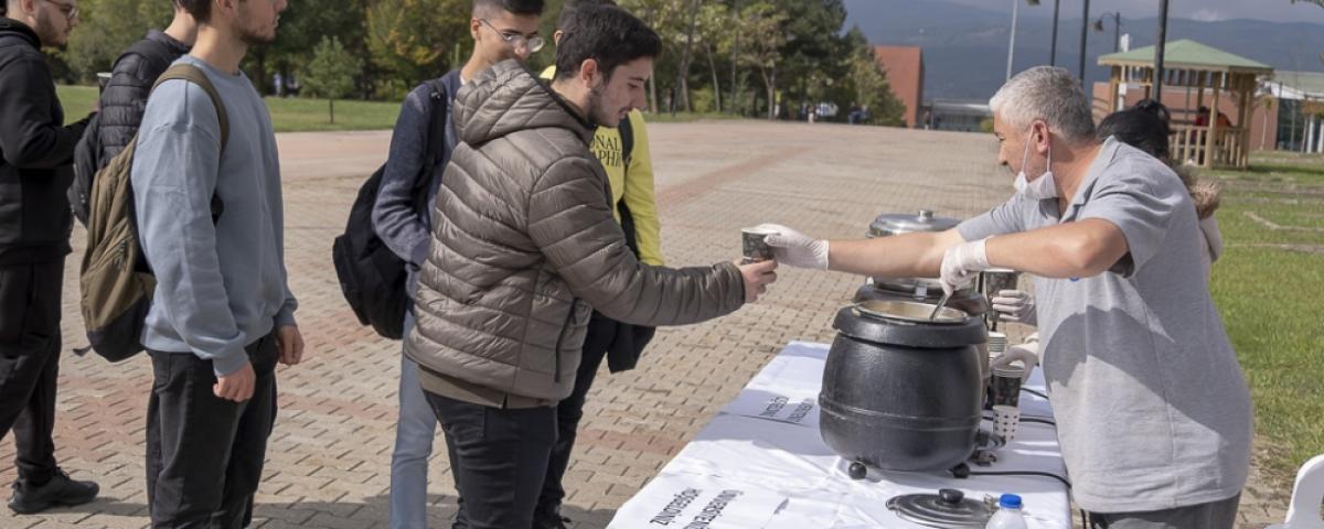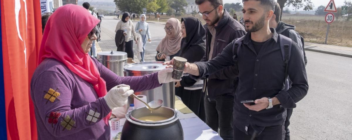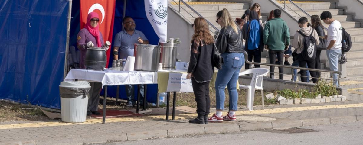 Öğrencilere İzzet Baysal Kültür Merkezi ve Prof. Dr. Fuat Sezgin Kütüphanesi önünde Sağlık, Kültür ve Spor Daire Başkanlığı tarafından çay ve çorba ikramında bulunuluyor. Öğrenciler ise Rektörlüğün organizasyonu ikram ve ücretsiz servisten memnun olduğunu ifade ettiler.