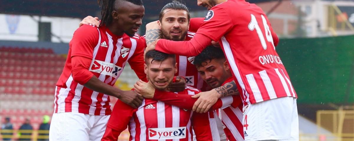 Karşılaşmaya baskılı başlayan kırmızı beyazlı ekip ilk golü 21'inci dakikada kalesinde gördü. Erzurumspor atağında ceza sahası içinde yapılan müdahaleye karşılaşmanın hakemi penaltı noktasını gösterdi. Topun başına geçen Eren Tozlu düzgün bir vuruşla topu ağlara gönderdi. 0-1