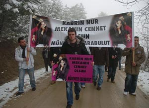 İki hafta önce İstanbul Etiler'de sevgilisi tarafından başı kesilerek çöp konteynerine bırakılan lise öğrencisi Münevver Karabulut için bir tören düzenlendi. Bolu'nun Mengen İlçesi Gökçesu beldesine bağlı Kayabaşı köyünde yapılan anma törenine 150 kişi katıldı. Öğle saatlerine doğru, "Münevver Karabulut'u anıyoruz. Adalete güveniyoruz. Adaleti bekliyoruz" pankartlı dört minibüsle Kayabaşı köyüne gelen Münevver Karabulut'un sınıf arkadaşları ve mahalle komşuları, köylüler tarafından karşılandı. Kayabaşı Camiinde öğle yemeği yiyen topluluk yürüyerek köy meydanından mezarlığa gitti. "Kabrin nur mekanın cennet olsun", "Ruhun şad olsun. Seni unutmayacağız" yazılı pankartlarla gözyaşları arasında Münevver'in mezarı başına gelen çok sayıda arkadaşı ve komşuları, mezara kırmızı karanfil bıraktı. Yapılan duanın ardından Münevver'le son kez bir araya gelen arkadaşları gözyaşlarına boğuldu.