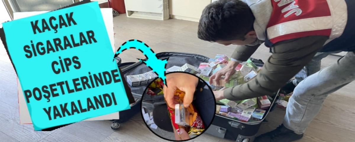 Otobüsün bagaj kısmında yolcu M.K'ye ait 2 valize ve cips poşetlerine saklanmış gümrük kaçağı 150 paket sigara ele geçirildi.