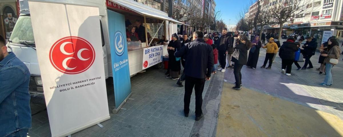 Bolu MHP İl Teşkilatı ve Ülkü Ocakları üyeleri, geçtiğimiz gün hayatını kaybeden Solmaz Baysal için Cuma namazı çıkışında lokma dağıtımı yaptı.