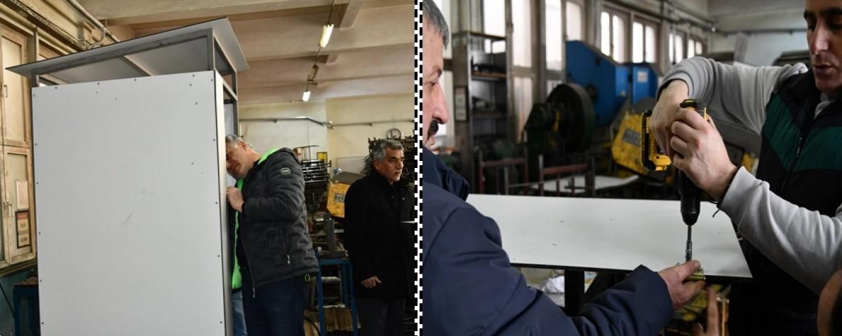 Okulun atölyesinde başlatılan çalışmayla içerisinde banyonun da bulunacağı 50 adet seyyar tuvalet ile 200 soba üretilerek deprem bölgesine gönderilmek üzere Bolu Valiliği'ne teslim edilecek. Öğrenciler gelen talebe göre soba ve tuvalet üretimlerine devam edecekler.