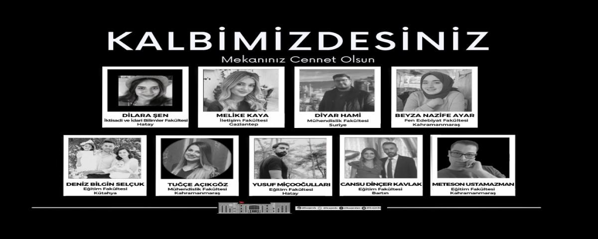 Kahramanmaraş merkezli yaşanan ve 10 ilde yıkımlara neden olan depremlerde binlerce vatandaş hayatını kaybetti. Depremin ardından başlatılan arama ve kurtarma çalışmalarında enkazdan cansız olarak çıkarılan kişiler arasında Bolu Abant İzzet Baysal Üniversitesi'nde öğrenim gören 9 öğrenci arkadaşlarını yasa boğdu.
