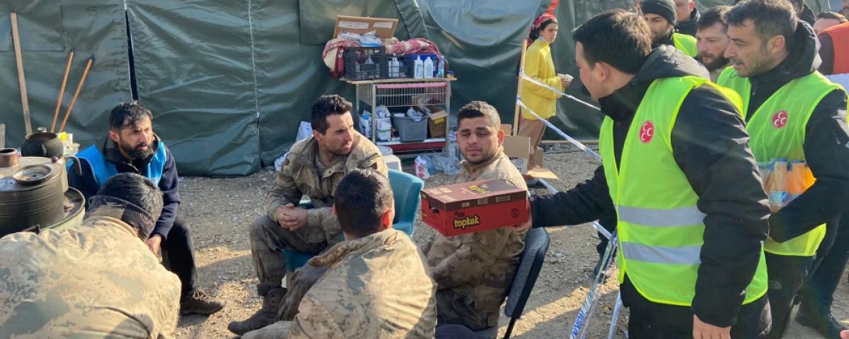 MHP İl Başkanı İlhan Durak, MHP Merkez İlçe Başkanı Hakan Aydın, Ülkü Ocakları Bolu İl Başkanı Cihan Özkalem, il ve ilçe yöneticilerinden oluşan yaklaşık 15 kişilik ekiple bölgeye giden heyet, oluşturulan çadırkentlerde bulunan çocuklarla bir araya geldi. İl Başkanı Durak ve heyet, depremzede çocuklara yanlarında getirdikleri malzemeleri verdi.