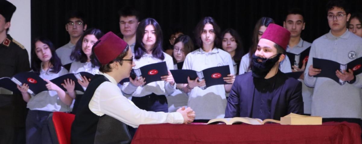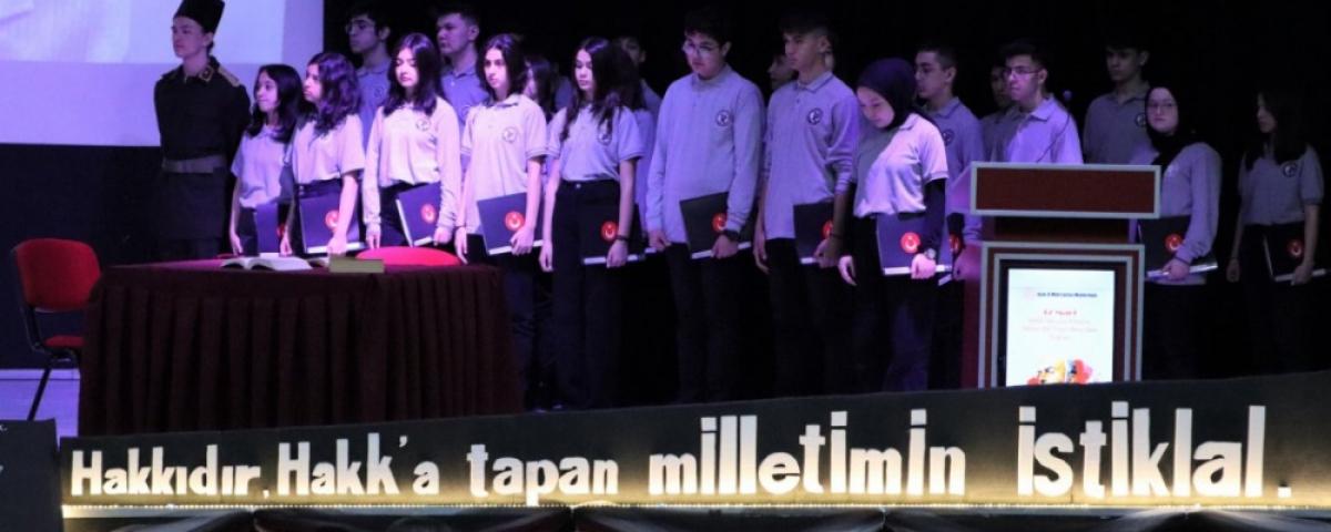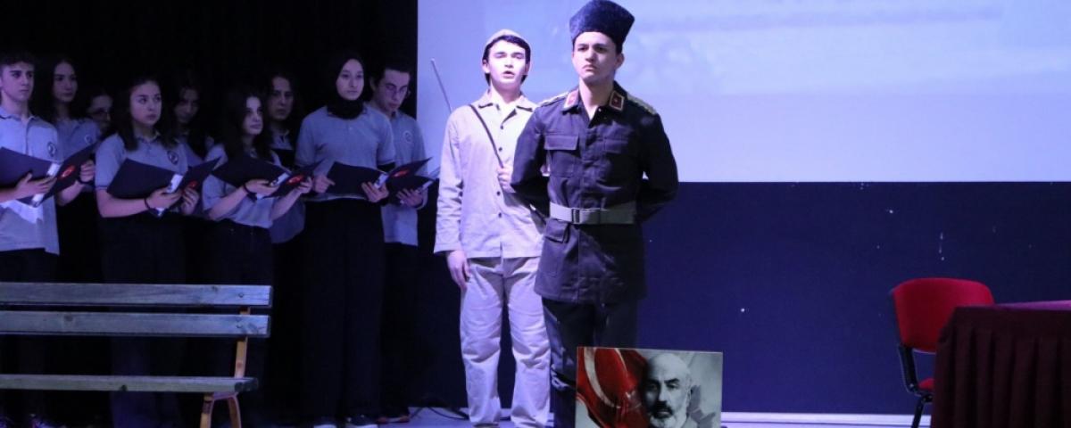 Vali Yardımcısı Damatlar, geçmişin unutulmaması gerektiğinin altını çizerek, “Sevgili öğretmen arkadaşlarım, sevgili öğrenciler bugün İstiklal Marşı'nın kabulünün yıl dönümü. Allah bir daha bu ülkeye İstiklal Marşı yazdırmasın. Bağımsızlığımızın, vatanımızın, bayrağımızın kıymetini bilelim. Kolay değil bugünlere kadar gelmek, kolay değil. Bugünleri hatırlamamız gerekir onun için bu programlar yapılıyor. Bugünlere nasıl geldik kimlerin sayesinde geldik bunları vurgulamamız gerekiyor. Bunları düşünmemiz gerekiyor. Şapkamızı önümüze koyup düşünmemiz gerekiyor değerli arkadaşlar. Unutursak, bunları unutursak bağımsızlığımızı kaybederiz. Onun için sürekli içinden geçtiğimiz günleri bilmemiz gerekir, tarihimizi bilmemiz gerekir. Bu vatanı bize emanet eden, bu ülkeyi kuran, bu ülke için canlarını feda edenleri sürekli anmamız gerekir. Böyle güzel bir programı hazırladıkları için okul yönetimine, değerli öğretmenlerimize, program sunucusuna, sevgili öğrencilerimize, emeği geçen herkese sevgiler saygılar sunuyorum. Başarılarının devamını diliyorum” ifadelerini kullandı. Lise öğrencileri ve öğretmenleri tarafından hazırlanan etkinlikte Mehmet Akif Ersoy'un hayatı anlatıldı. Öğrenciler, canlandırmalarıyla İstiklal Marşı'nın kabulüne giden sürece ilişkin katılımcılara bilgiler verdi. Sahnede küçük tiyatro oyunları da sergilenerek, yaşananlara dikkat çekildi.