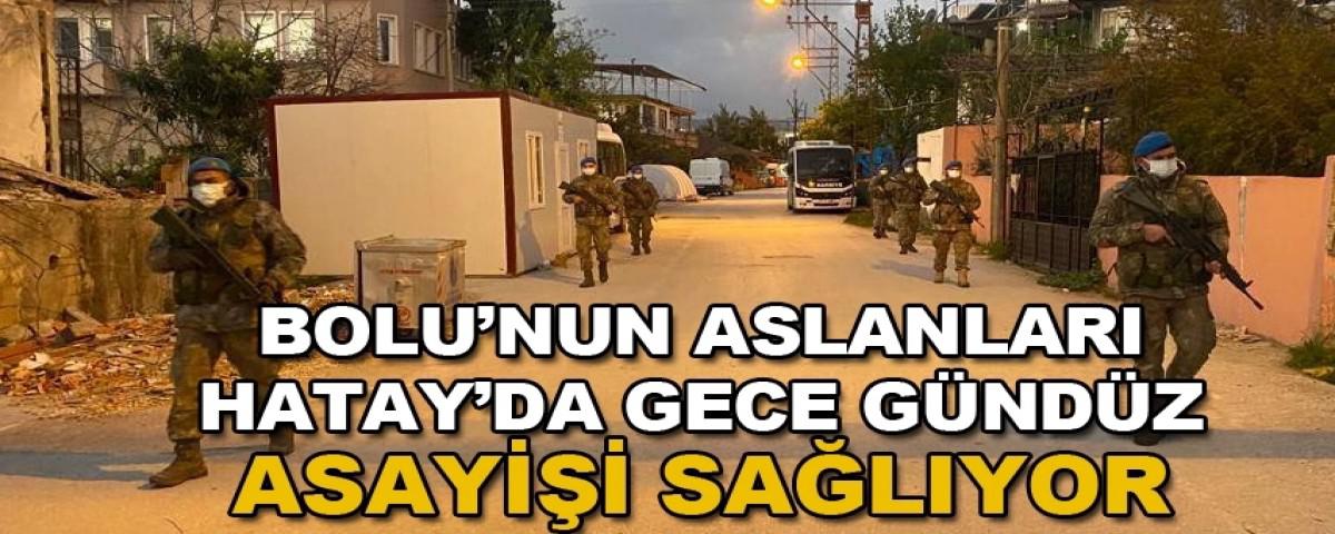 Milli Savunma Bakanlığı emrinde görevli askerler, deprem bölgesi olan Hatay'da asayiş nöbetlerine devam ediyor. Bu doğrultuda depremin yaşandığı ilk günden itibaren deprem bölgesinde olan Bolu 2. Komando Tugayı da bölgede gece gündüz demeden görevini ifa ediyor.