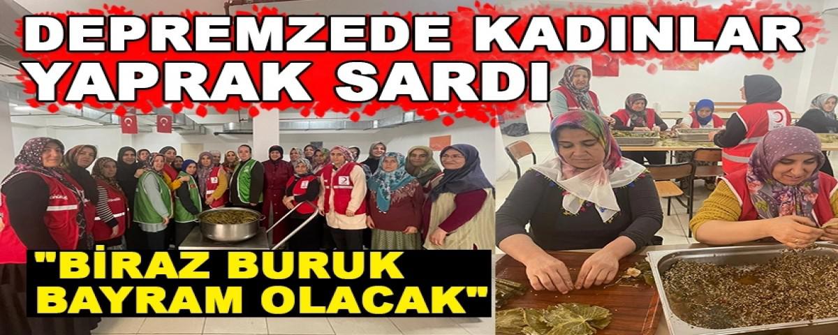 Kahramanmaraş merkezli meydana gelen depremler nedeniyle Bolu'da Hattat Emin Barın Öğrenci Yurdu'nda konaklayan depremzedeler, Türk Kızılay'ı Bolu Şubesi ve İnsani Yardım Vakfı (İHH) Bolu şubesinin düzenlediği yaprak sarma etkinliğine katıldı. Etkinliğe katılan depremzede kadınlar hamarat elleriyle, bayram için tepsi tepsi yaprak sardı.