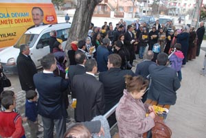 Başkan Yılmaz?ın yanı sıra çok sayıda partilide guruplara ayrılarak gezilmedik sokak ve kapı bırakmadı. Başkan Yılmaz seçim gezilerinde çocukları yine unutmadı ve onlara şeker verdi.