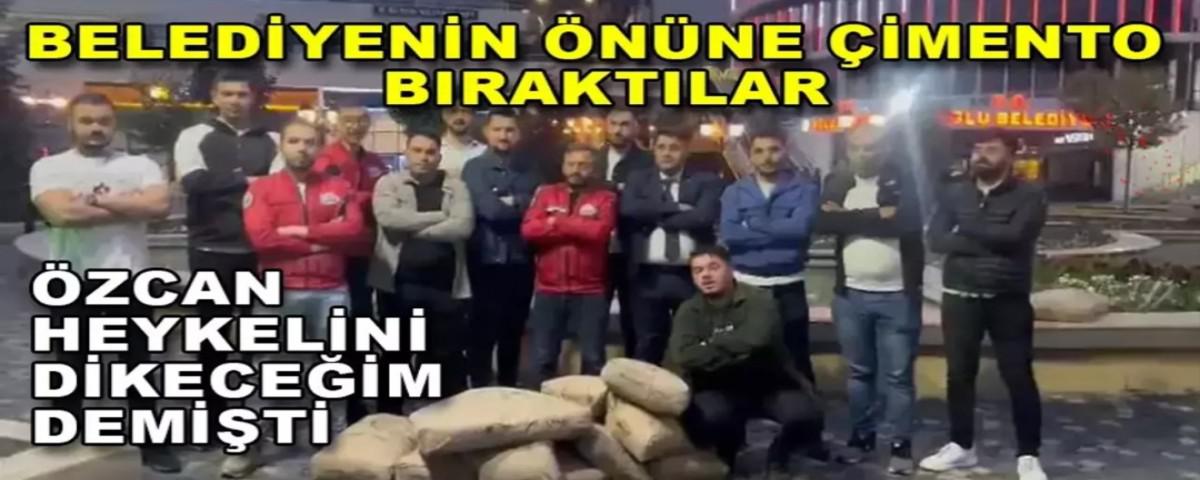AK Parti Gençlik Kolları Başkanı Fatih Bayrak ve gençlik kolları üyeleri seçim sonuçlarının açıklanmasının ardından Bolu Belediye binasının önüne gelerek 10 torba çimento torbası bıraktılar.