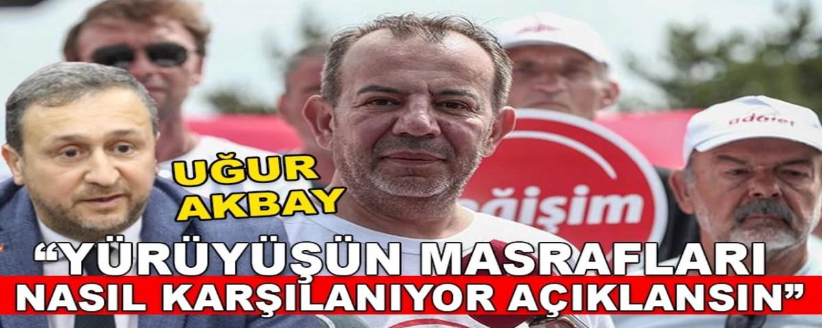 Akbay, Özcan'ın yürüyüş organizasyonu ile ilgili yaptığı açıklamada “Yüzyılda bir gelen Genel Başkanı'nı koltuğundan etme yolunda ‘Değişim-Adalet' adı altında yollara düşen Bolu Belediye Başkanı Tanju Özcan ve ekibinin 10 günlük masrafı ne kadardır? Bu yürüyüşün toplam bütçesi ne kadardır? Bu harcamalar nerden karşılanacaktır varsa sponsor olan açıklansın. Günlük tahmini 250-300 Bin TL rakamın telaffuz edildiği masraf nereden karşılanmaktadır? Bu değirmenin suyu nereden gelmektedir? Üç öğün yemek, içmek, karavanlar, getir götür araçları, akşamları programa çıkma bütçeleri, belediyeden zorla götürülen elemanlara verilecek avanslar vesaire” dedi.