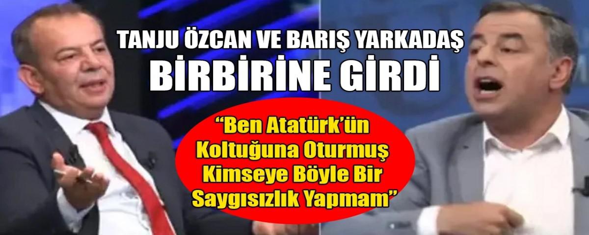 Açıklamaları ve yaptıklarıyla gündemden düşmeyen Tanju Özcan, tv100'de yayınlanan Taksim Meydanı programına konuk oldu. Özcan ile gazeteci Barış Yarkadaş arasında ise canlı yayında 'koltuk fırlatma' tartışması yaşandı.