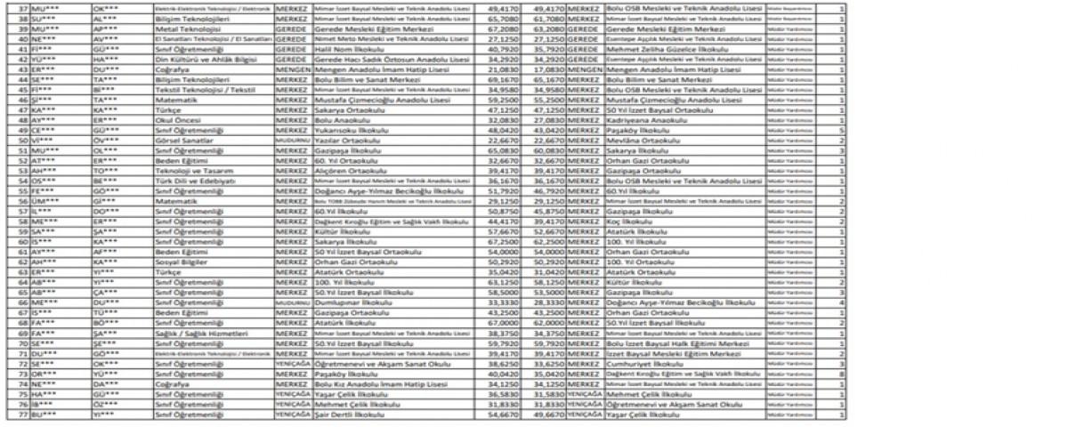Bolu İl Milli Eğitim Müdürlüğü geçiş taleplerinin sonuçlarını açıkladı. Müdürlüğün yaptığı açıklama ile 77 kurum yöneticisinin yeni görev yerleri kesinlik kazandı.
