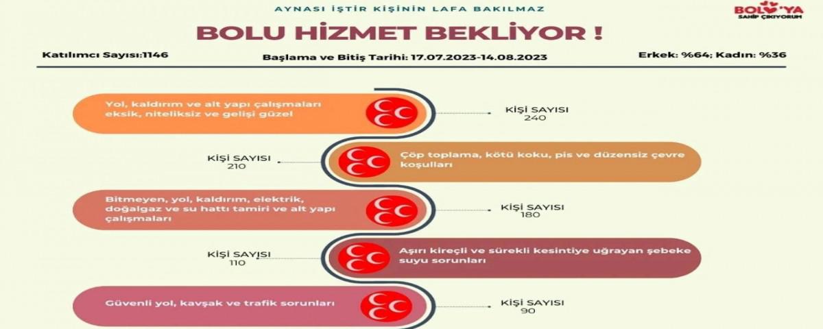 Bolu Belediye Başkanı Tanju Özcan, AK Parti Bolu İl Başkanı Suat Güner'in belediyedeki hurda araçları sattığına iddiaları sebebiyle çıkan atışmalar devam ederken, MHP Bolu İl Başkanı İlhan Durak Bolulu vatandaşların sorunlarını değerlendirmeye ve onlara çözüm bulmaya devam ediyor. Başkan Durak, “Bolu'ya sahip çıkıyorum” isimli projesinin anket sonuçlarını tamamladı.