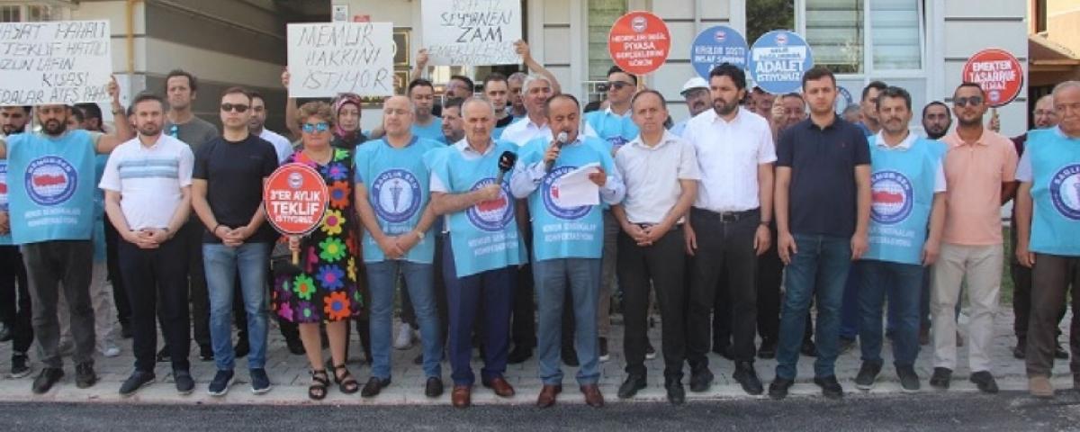 Emeklerinin hakkını savunmak ve seslerini duyurmak için toplandıklarını dile getiren Bolu Memur-Sen İl Başkanı Sami Yılmaz, 81 ilde alanlarda ve meydanlarda olduklarını belirtti. Yılmaz ve sendika üyeleri, yetersiz buldukları teklifleri dövizlerle protesto etti.