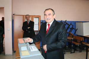 Ak Parti Belediye Başkan Adayı Alaaddin Yılmaz ve eşi Güler Yılmaz oyunu 50. Yıl İzzet Baysal İlköğretim Okulu?nda kullandı.
