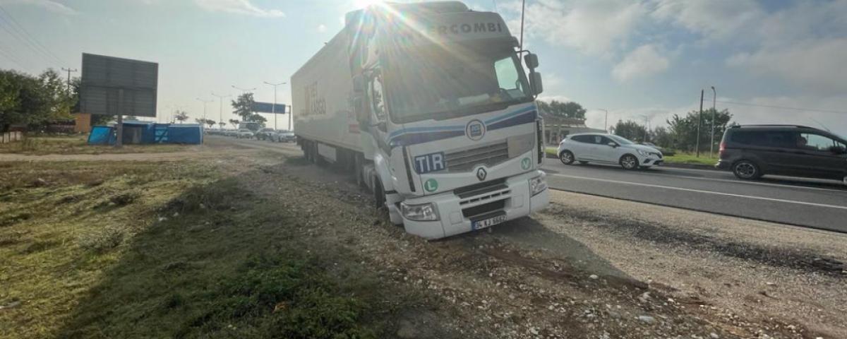 Edinilen bilgiye göre, D100 Karayolu Ankara istikametine seyir halinde olan 34 KJ 6662 plakalı tır kontrolden çıktı. Kontrolden çıkan tır yol kenarında bulunan toprak alandaki çamura saplandı. Devrilmekten son anda kurtulan tırın sürücüsü araçtan inerek yardım istedi.