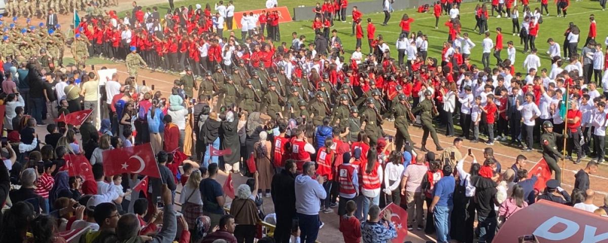 Türkiye Cumhuriyeti'nin Gazi Mustafa Kemal Atatürk ve silah arkadaşlarının üstün mücadelesi sonucu kurulmasının 100. Yılı kutlamalarının son programı Atatürk Stadyumu'nda gerçekleştirildi. 14 yıl aradan sonra ilk defa stadyumda gerçekleştirilen kutlama programına sabahın erken saatlerinden itibaren binlerce vatandaş Türk bayraklarıyla akın etti.