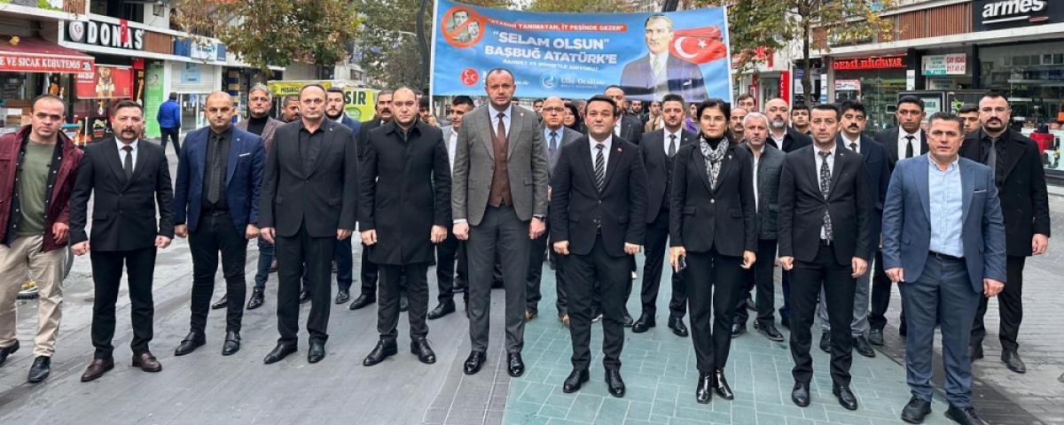 Bolu'da 10 Kasım Atatürk'ü Anma günü sebebiyle saat 09.05'te Anıtpark'ta toplanan Milliyetçi Hareket Partisi Bolu Teşkilatı açtıkları pankartla Cumhuriyet Halk Partisi'ne gönderme yaptı.