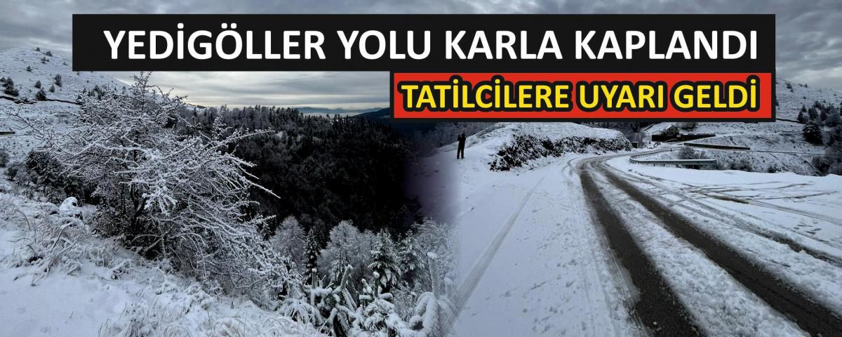 Edinilen bilgiye göre, Bolu'da dün sabah saatlerinden itibaren yüksek kesimlerde etkili olan kar yağışıyla birlikte Yedigöller Milli Parkı yolu üzeri ve yeşil alanlar beyaz örtüyle kaplandı. Mevsimin ilk karının düştüğü Yedigöller Milli Parkı yolu üzerinde oluşan kar birikintisiyle birlikte Doğa Koruma ve Milli Parklar Müdürlüğü sürücülere uyarı yaptı.