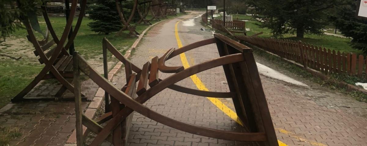 Bolu'da, dün gece saatlerinden itibaren etkili olan lodos nedeniyle Gölcük Tabiat Parkı'nda bulunan ağaçlar devrildi. Tabiat Parkı'nda bulunan çöp konteynerleri ve oturakların da yıkıldığı lodos nedeniyle Milli Parklar İl Müdürlüğü tarafından yeni bir karar alındı.