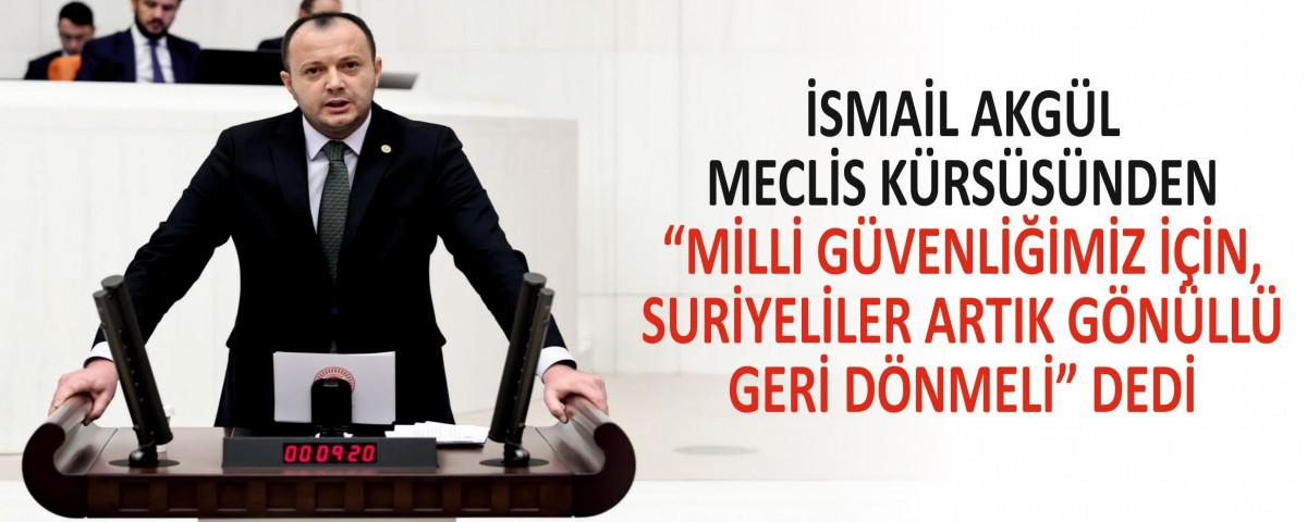 Ülkemize göç eden 4 milyon 644 bin yabancının ülkemizin güvenliğine tehdit oluşturmaması için gönüllü geri dönüş politikasının büyük önem taşıdığını vurgulayan MHP'li Akgül, “Ülkemiz 2011 yılında Suriye'de başlayan iç savaş nedeniyle göçmen akımıyla karşılaşmıştır. 1 Kasım 2023 tarihi itibariyle ülkemizde toplam yabancı sayısı 4 milyon 644 bin olup; bu sayınında 3 milyon 255 bini geçici koruma altında ki Suriyelileri kapsamaktadır.