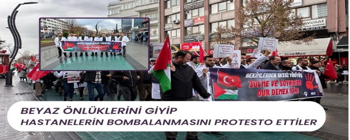 Yürüyüşün sonunda İsrail'in Gazze'deki zulmünü kınayan bir açıklama yapan Tıp Fakültesi öğrencileri, sağlık çalışanları ve vatandaşlar, Gazze'de hayatını kaybedenler için dua etti.