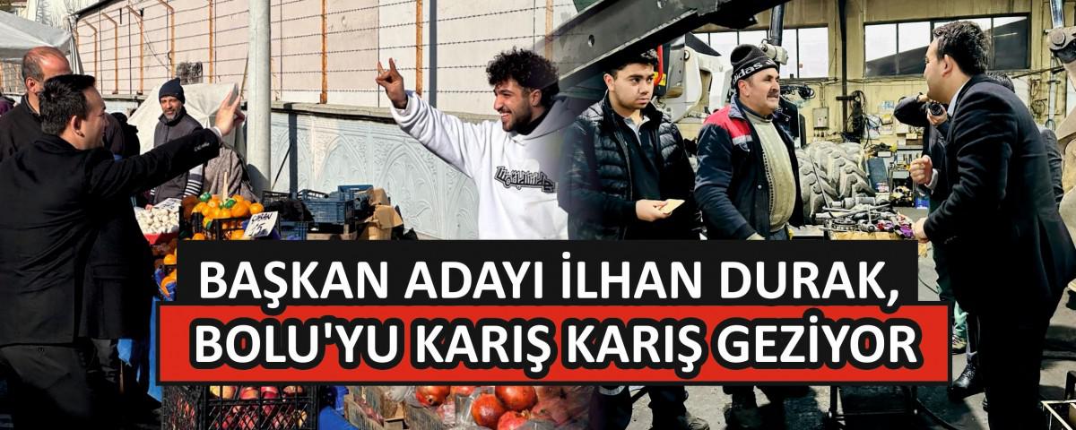 Milliyetçi Hareket Partisi(MHP) Bolu Belediye Başkan Adayı İlhan Durak, 31 Mart'ta gerçekleştirilecek Yerel Seçimler için durmak bilmeden çalışmaya devam ediyor. Bolu Belediye Başkan Adayı İlhan Durak, günlük program çerçevesinde ziyaret ettiği fabrikalar, iş yerleri ve kurumlarda hem personeller ile bir araya gelerek sorunlarını dinliyor hem de işverenlerle görüş alışverişinde bulunuyor.