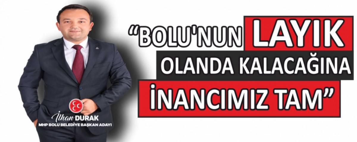 31 Mart yerel seçim çalışmalarını sürdüren Milliyetçi Hareket Partisi Bolu Belediye Başkan Adayı İlhan Durak, sosyal medyasından yaptığı paylaşımla Bolu'nun sorunlarına dikkat çekerken, Bolu Belediye Başkan Adayı Tanju Özcan'a da gönderme yaptı. Trafik sorunundan, otoparka, kültür merkezinden su fiyatlarına bir çok konunun yer aldığı videoda Tanju Özcan'ın 2019 seçimlerinde vermiş olduğu sözleri tutmadığını bir kez daha gözler önüne serdi. Ayrıca paylaşılan video ile Bolu'nun sorunlarını bildiklerini ve hazırladıkları projelerin lafta kalmayacağını 31 Mart itibariyle seçildikten sonra hemen çalışmalara başlayarak Bolu'nun geleceğini şekillendireceklerini belirten Milliyetçi Hareket Partisi Bolu Belediye Başkan Adayı İlhan Durak “Biz bu yola çıkarken ve projelerimizi hazırlarken Bolu'nun sorunlarını ve çözümlerini bilerek çıktık. Hazırladığımız projeler ile Bolu'nun geleceğini inşa edeceğiz. Söz verip de tutmayanlardan olmayacağız. Bolu için, Bolu'ya hizmet için geliyoruz. Eğer ki sözümüzü tutmaz isek Bolulu hemşehrilerimiz bize bunun hesabını 5 yıl sonra sorsunlar. Biz dürüst ve şeffaf bir belediyecilik hizmetini Bolu'ya kazandıracağız. Ayırmadan, ayrışmadan canla başla Bolu için çalışacak ve Bolumuzu hep birlikte inşa edeceğiz. 31 Mart akşamı zaferimizi ilan edeceğiz ve Bolu'nun layık olanda kalacağına inancımız tam” dedi.