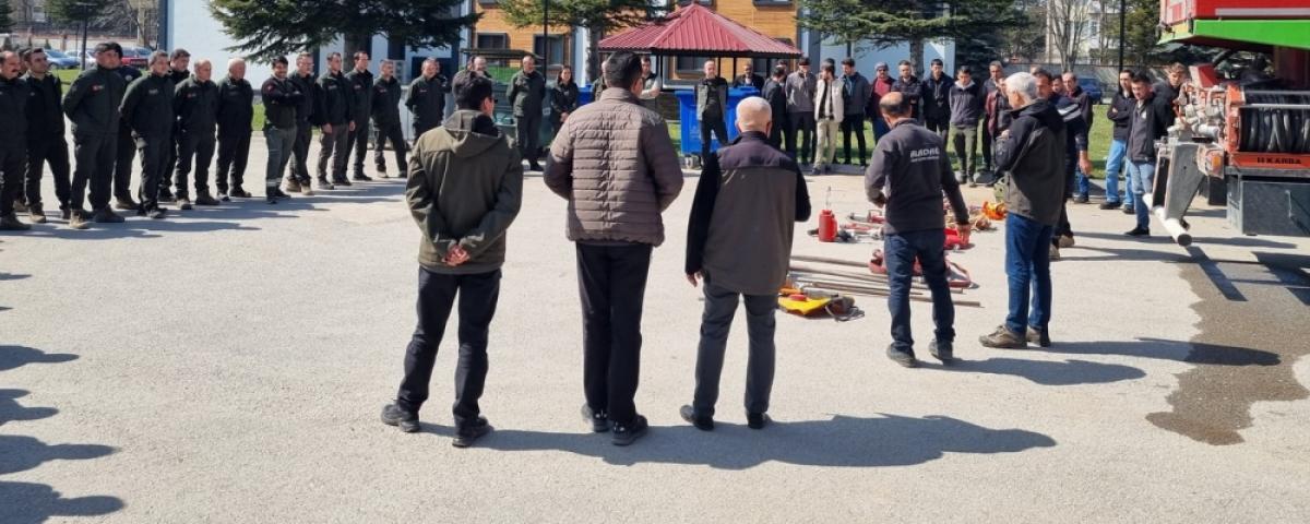 Eğitimin birinci aşamasında Orman Mühendisi Bayram Cankut tarafından yangın çıkış nedenleri, ilk müdahale yöntemleri, ile iş güvenliği konusunda bilgiler verildi. Daha sonra yangına müdahale ekipmanları tanıtılarak orman muhafaza memuru ve yangın işçilerine hortum serme ve yangına müdahale tatbikatı yaptırıldı.