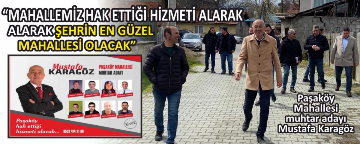 Bolu'nun Paşaköy mahallesinde muhtarlık için en yakın ve tecrübeli isim olan Bolu Belediyesi emeklisi Mustafa Karagöz, güçlü ekibiyle birlikte çalışmalarına devam ediyor. Paşaköy mahallesinin yerlisi olan ve herkes tarafından sevilen Karagöz, mahallesindeki vatandaşlarla tek tek görüşerek Paşaköy için görüş alışverişinde bulunuyor.