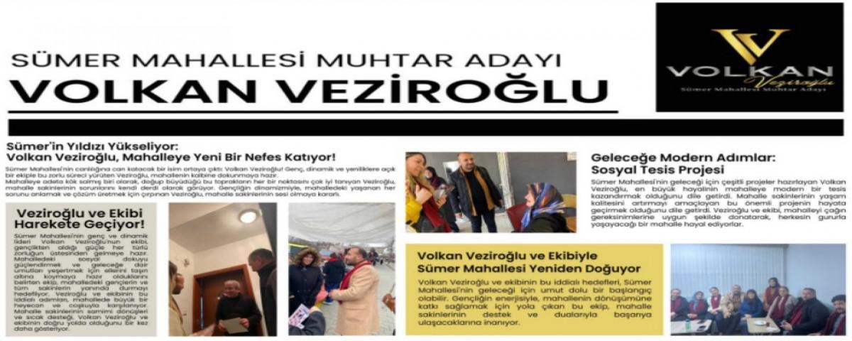 Sümer Mahallesi'nin geleceği için çeşitli projeler hazırlayan Volkan Veziroğlu, en büyük hayalinin mahalleye modern bir tesis kazandırmak olduğunu dile getirdi. Mahalle sakinlerinin yaşam kalitesini artırmayı amaçlayan bu önemli projenin hayata geçirmek olduğunu dile getirdi. Veziroğlu ve ekibi, mahalleyi çağın gereksinimlerine uygun şekilde donatarak, herkesin gururla yaşayacağı bir mahalle hayal ediyorlar.